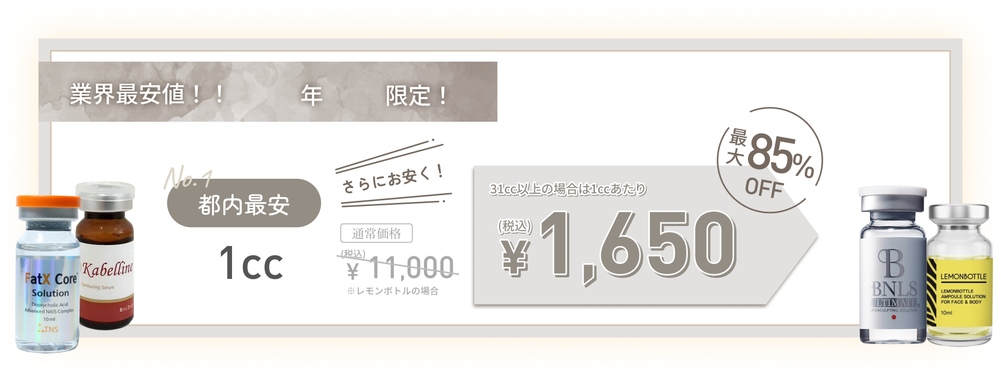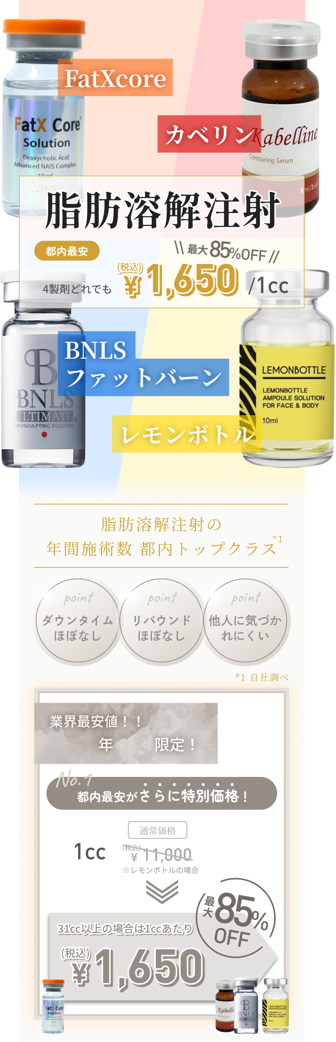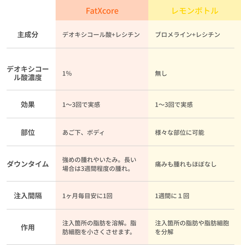 FatXcoreは重い痛みが数日間持続します。レモンボトルはほぼ無痛となっております。