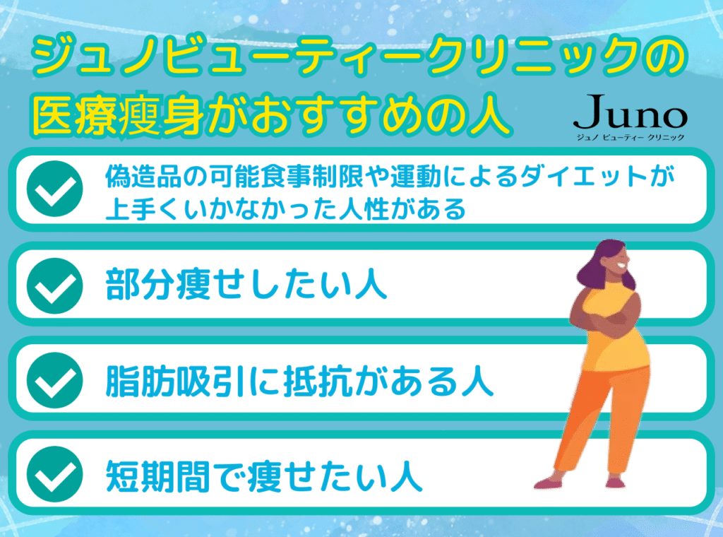 ここでは、ジュノビューティークリニックの医療痩身がおすすめな人を解説していきます。