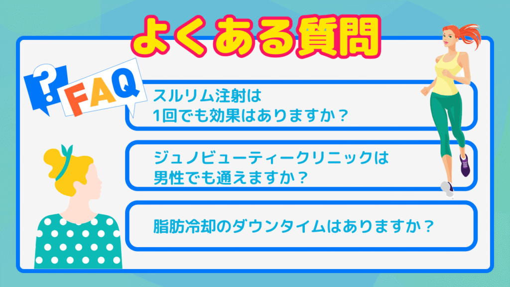 部分痩せしたい人やリバウンドしがちな人は、ぜひジュノビューティークリニックで脂肪冷却やスルリム注射などの体に負担が少ない医療痩身を検討してみてください。