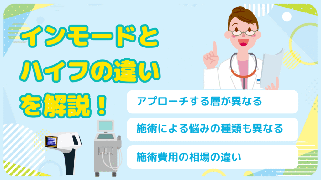 ハイフは引き締め重視・インモードは脂肪減少+美肌重視と考えると、自分に合う施術を見つけやすいでしょう。