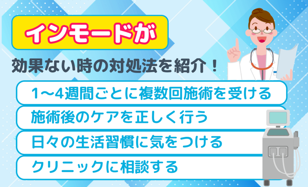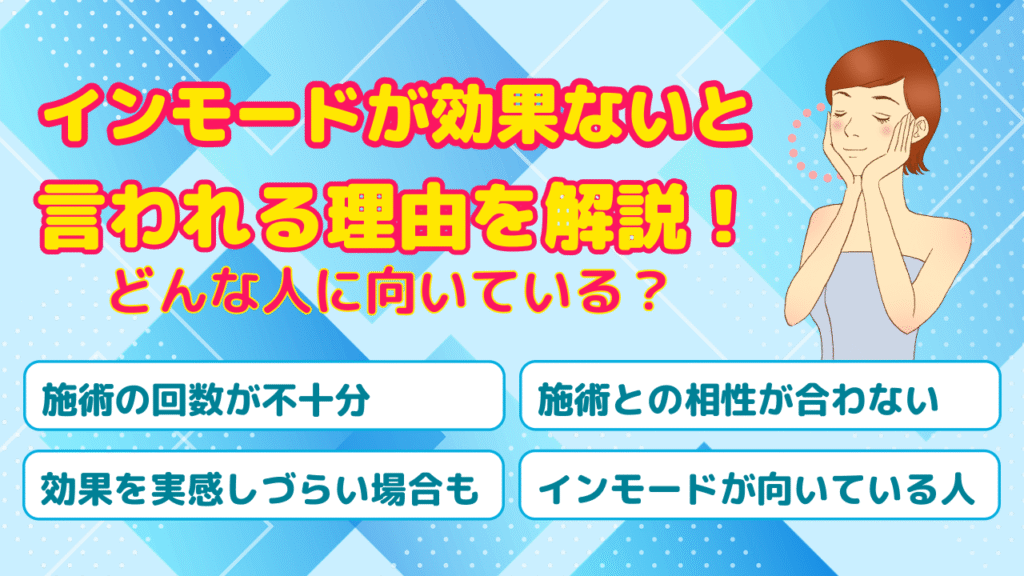 インモードは多くの人に適した施術ですが、悩みや肌の状態によっては効果を感じにくいケースもあります。