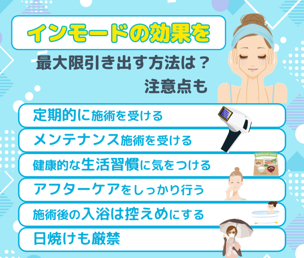 インモードの効果をより高めるためには、施術を受けるタイミングや生活習慣、アフターケアが重要です。