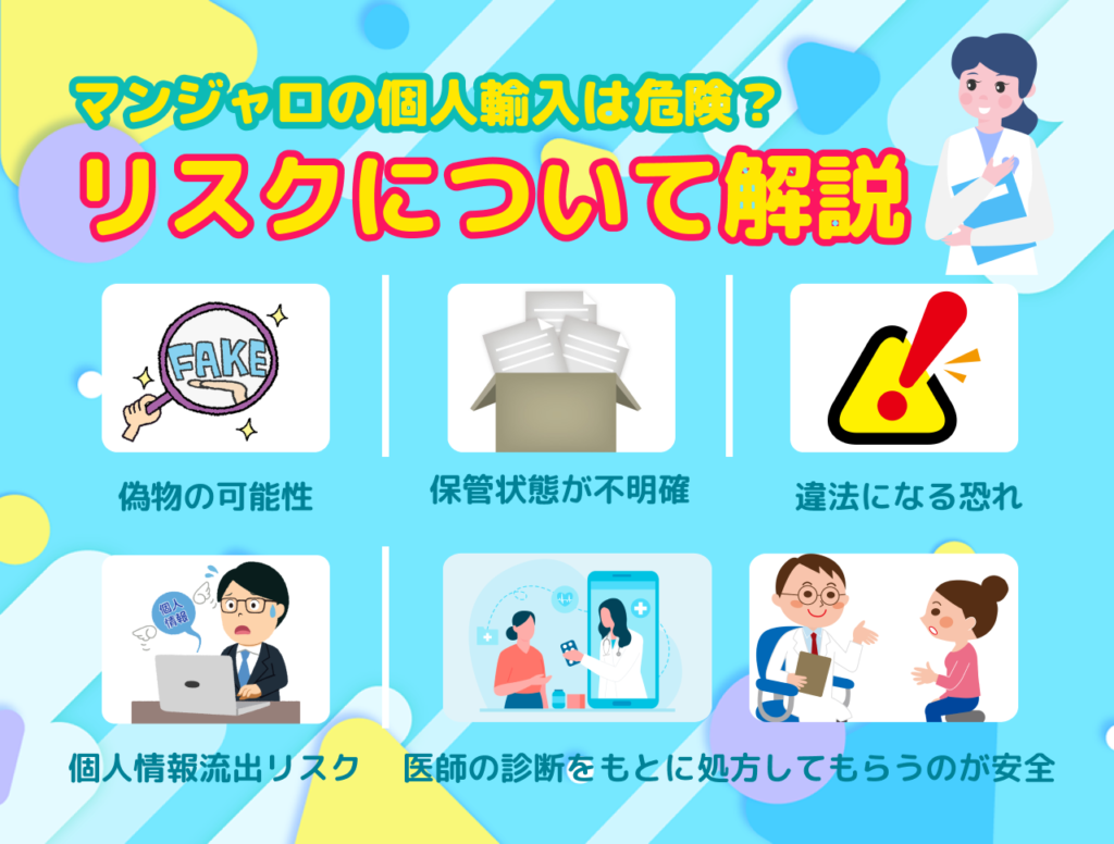 ここでは、マンジャロを個人輸入する際に考えられる主なリスクについて整理し、安全な選択をするための判断材料を解説していきます。