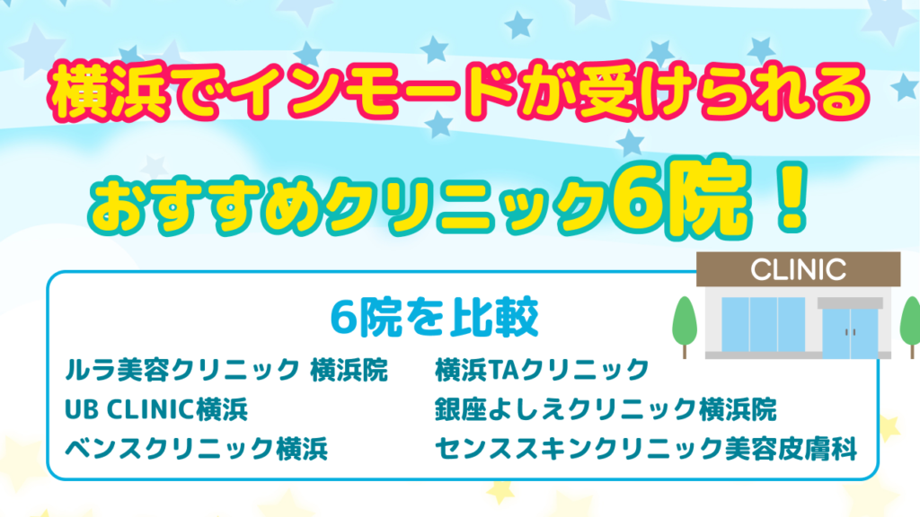 横浜にはインモードを導入している美容クリニックが多数ありますが、料金、施術の種類、アフターケアの内容などは院によってさまざまです。