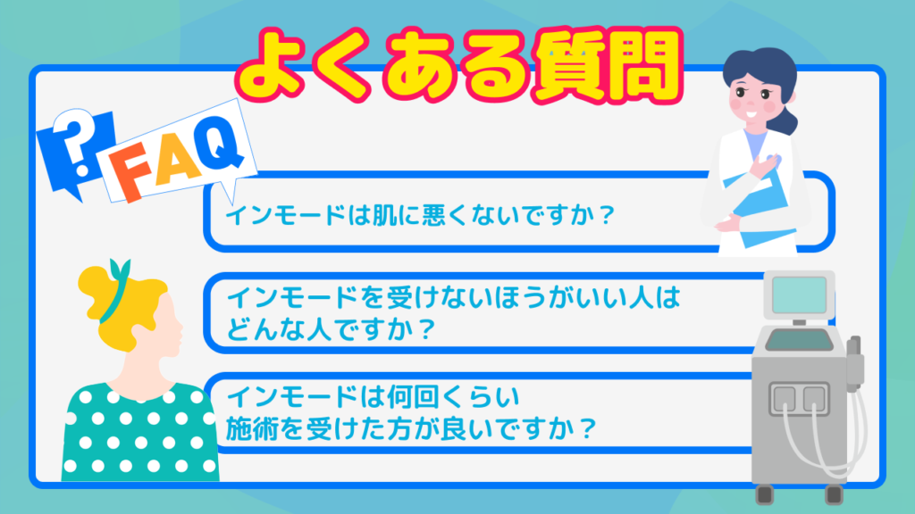 インモードは、肌内部に適切な熱を与え、コラーゲン生成を促すことで肌質改善や引き締めを行う施術であり、基本的には肌に悪影響はありません。